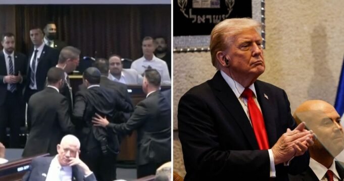 W poniedziałek przemówienie prezydenta USA Donalda Trumpa w izraelskim Knesecie zostało drastycznie przerwane przez wrzeszczących okrzyków.