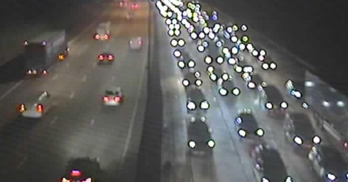 Władze National Highways podały, że tuż przed godziną 18:00 na dojeździe panował sześciomilowy korek i 45-minutowe opóźnienie, ale ruch szybko wzrósł, a kierowcom polecono spodziewać się 120-minutowego opóźnienia około 18:34. Organizacja dodała w swojej aktualizacji: „Pasy 3 i 4 (z 4) są zamknięte, podczas gdy ruch odbywa się wzdłuż miejsca zdarzenia na pasach 1 i 2”.