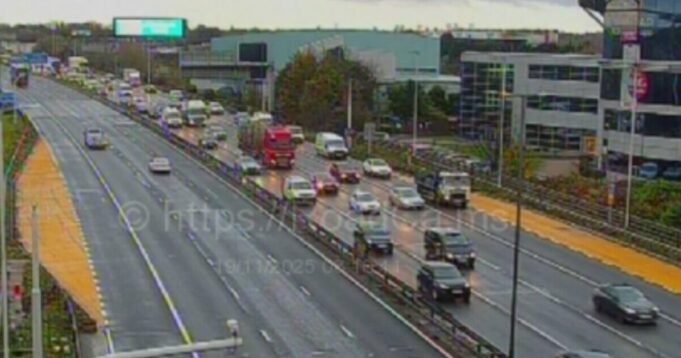 National Highways powiedział: „Na M6 w kierunku północnym w West Midlands występują poważne, przekraczające 90 minut opóźnienia w wyniku kolizji pomiędzy J8 (na M5) i J9 (Wednesbury).