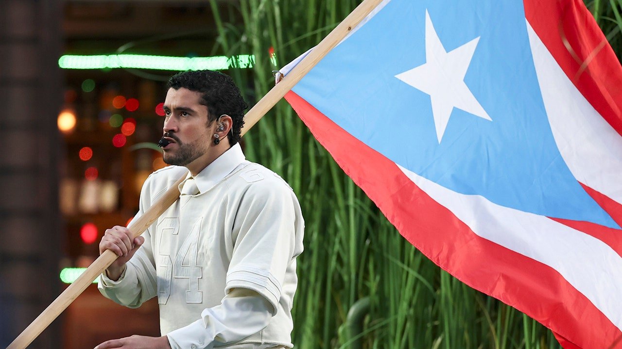 Bad Bunny występuje podczas Apple Music Halftime Show podczas meczu piłkarskiego NFL Super Bowl LX pomiędzy Seattle Seahawks i New England Patriots na stadionie Levi’s, 8 lutego 2026 r. w Santa Clara w Kalifornii. (Kevin Sabitas/Getty Images)