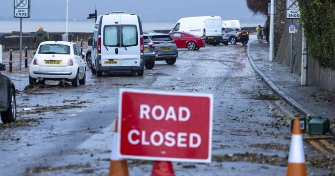 National Highways stwierdziły, że „stojąca woda uczyniła trasę nieprzejezdną, a warunki nadal są niebezpieczne”.