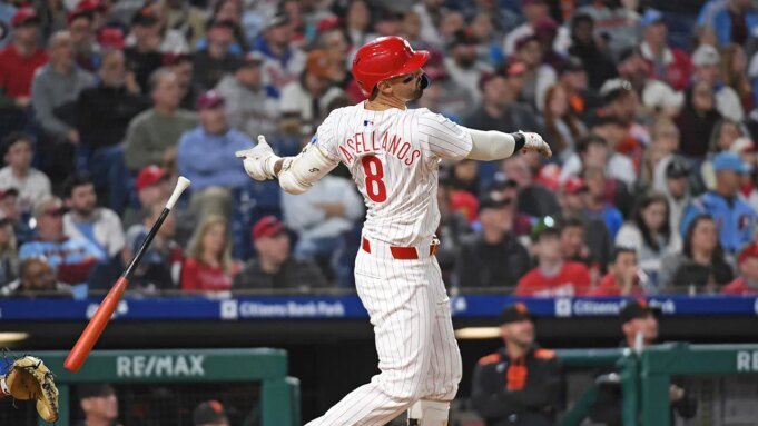 Piąty dół, za gorącym na czerwono o trzy San Francisco GiantsCasellanos wziął głęboką boisko w lewym środku, aby zrobić grę 6-4 w Philly.