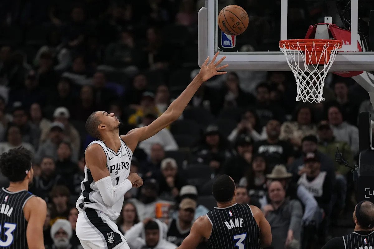 SAN ANTONIO (AP) Victor Wembanyama zdobył 25 punktów, osiem zbiórek i pięć bloków, a San Antonio pokonało Orlando Magic 112:103 w niedzielny wieczór w meczu, który rozpoczął się pięć godzin później z powodu problemów z podróżą Spurs.